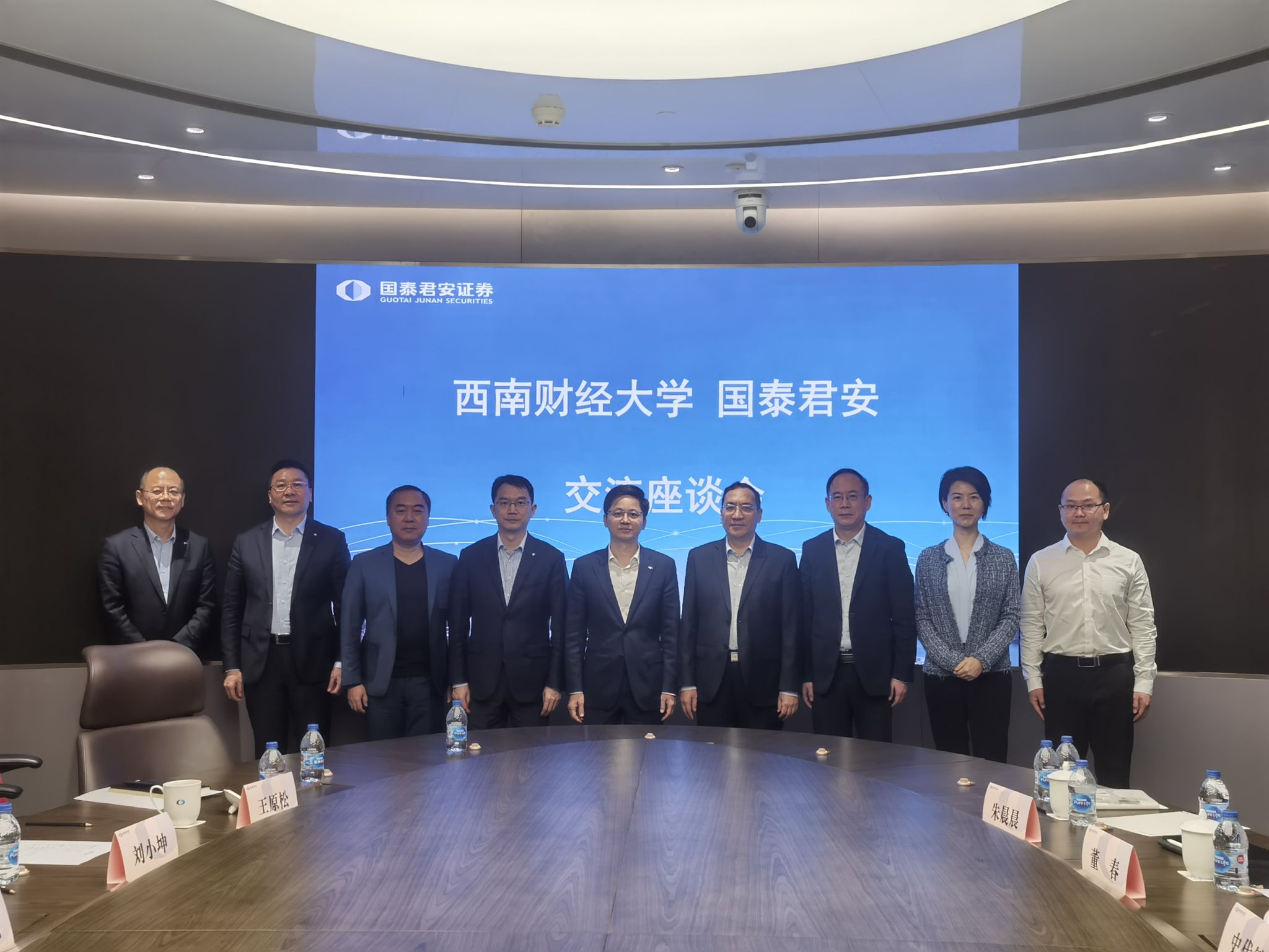 国泰君安证券总裁李俊杰、人力资源部总经理刘小坤、金融学院院长黄燕铭、投行事业部副总裁金利成、投行事业部人力资源总监刘嘉等领导参与座谈。会上,史代敏首先感谢企业长期以来对于学校发展的大力支持,表达此次拜访的重要背景和因素。用“百年西财”、“新财经”、“产教融合”三个关键词介绍了学校历史沿革、学科发展、校企合作的情况。