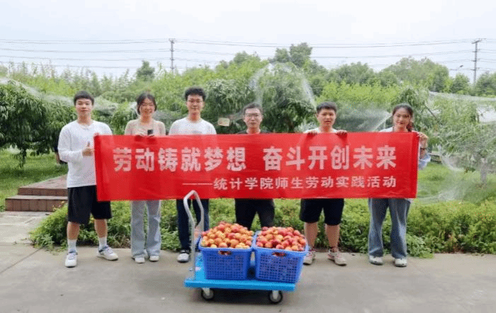 2024年5月28日下午,统计学院组织开展了“百年初心育桃李,春华秋实结硕果”果蔬采摘系列活动。成熟的黄瓜和红透的油桃被同学们的巧手一一摘下,大家分工明确、协作默契、收获满满,喜悦的汗水在脸颊流淌。在采摘完所有黄瓜和油桃之后,售卖活动如火如荼的开展起来,吸引了大量师生前来购买,黄瓜与油桃的品质得到了师生们的一致好评。