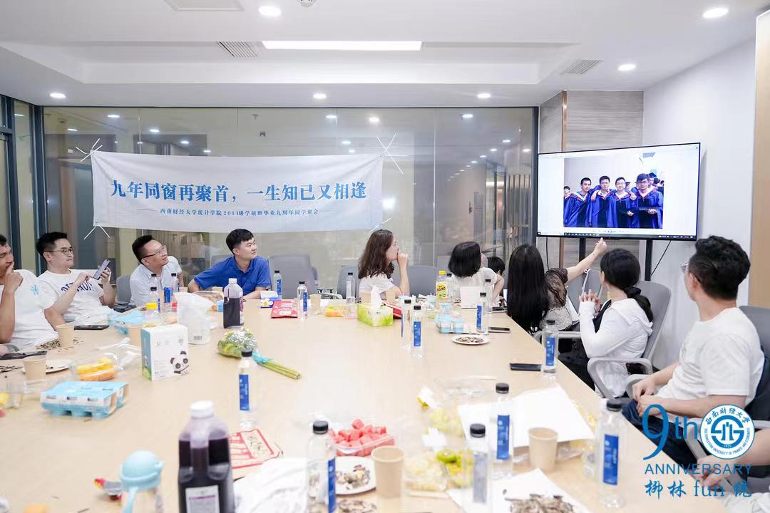 当天下午2点,2011级统计学院研究生校友们在柳林校区诚正楼14楼集合,参加了一场温馨的茶话会。茶话会上,大家互相问候,分享了各自的生活和工作经历。