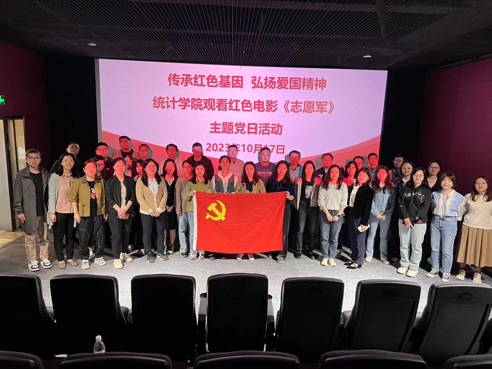 在抗美援朝战争胜利70周年之际,为致敬英烈、铭记历史、传承精神、激励奋进新征程,10月17日,统计学院党委以主题党日的形式,组织教师四个党支部党员近40余人观看爱国主义影片《志愿军:雄兵出击》。
