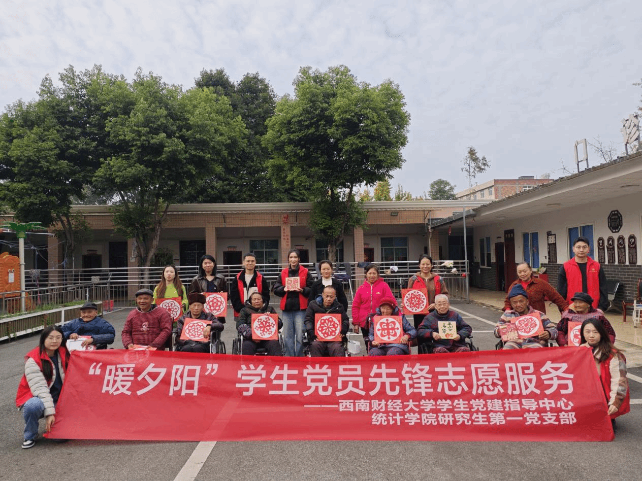 12月3日下午,统计学院研究生第一党支部的党员志愿者们前往天府社区养老院梓潼分院开展了一场别开生面的“暖夕阳”志愿服务活动。