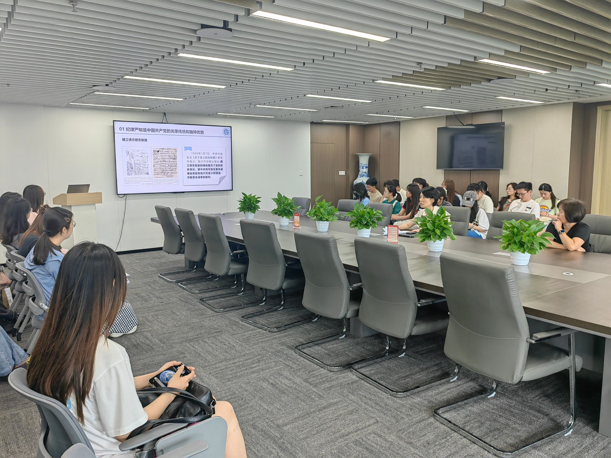 为深入学习贯彻习近平总书记关于党纪学习教育的重要讲话和重要指示精神,加强毕业生党员自我约束,2024年6月20日下午,在诚正楼13楼会议室,统计学院党委书记董春以《党的纪律建设永远在路上——学习新修订〈中国共产党纪律处分条例〉》为题为学院毕业生党员讲授纪律党课,学校特聘组织员周高蓉老师列席指导。