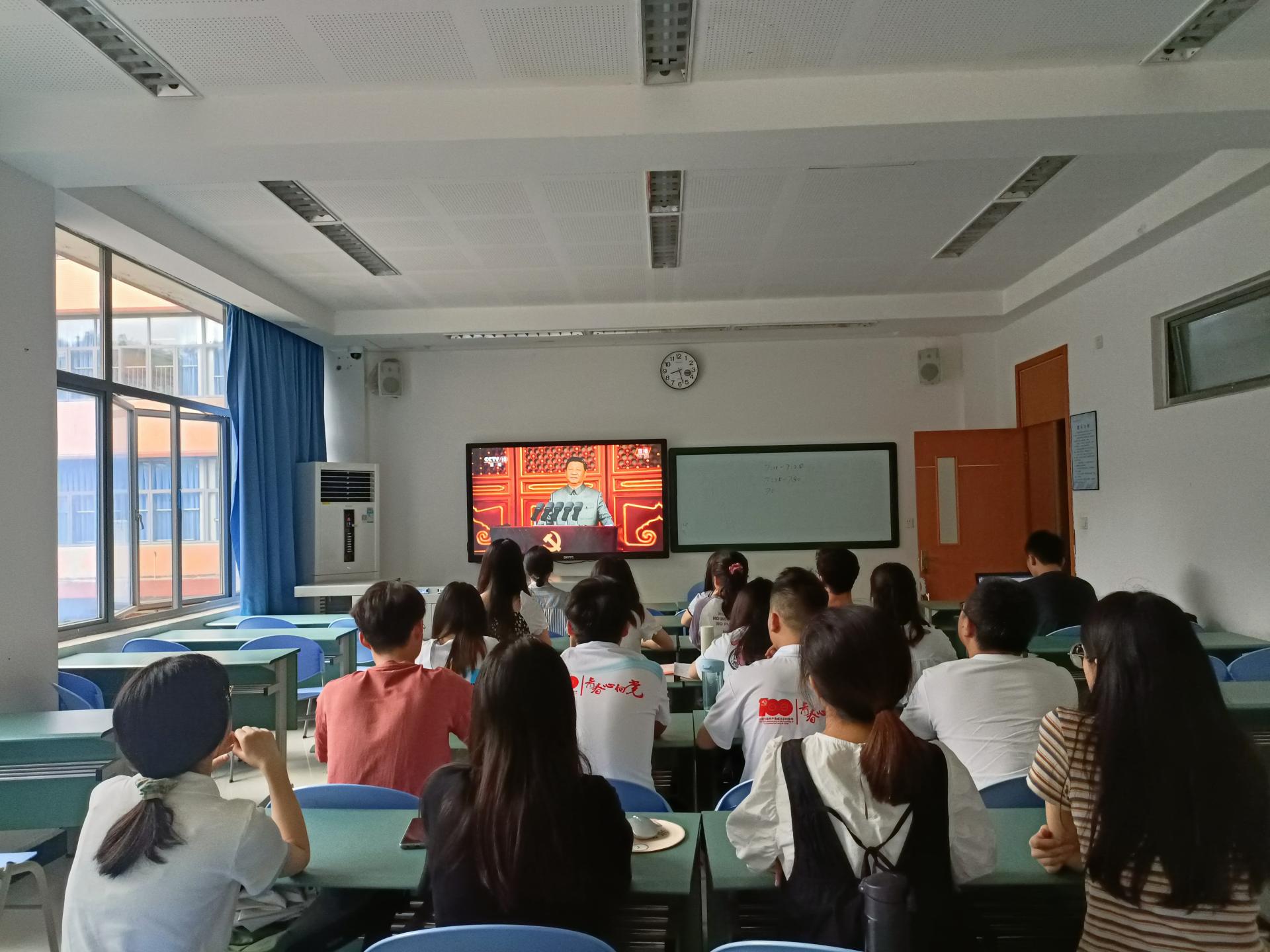 2021年7月1日是中国共产党百年华诞,庆祝中国共产党成立100周年大会在北京天安门广场隆重举行。统计学院组织师生于通博楼B212会议室集体观看庆祝大会,学院师生积极响应,踊跃参加,未到场的师生也纷纷在教室、寝室等通过各种形式直播收看。