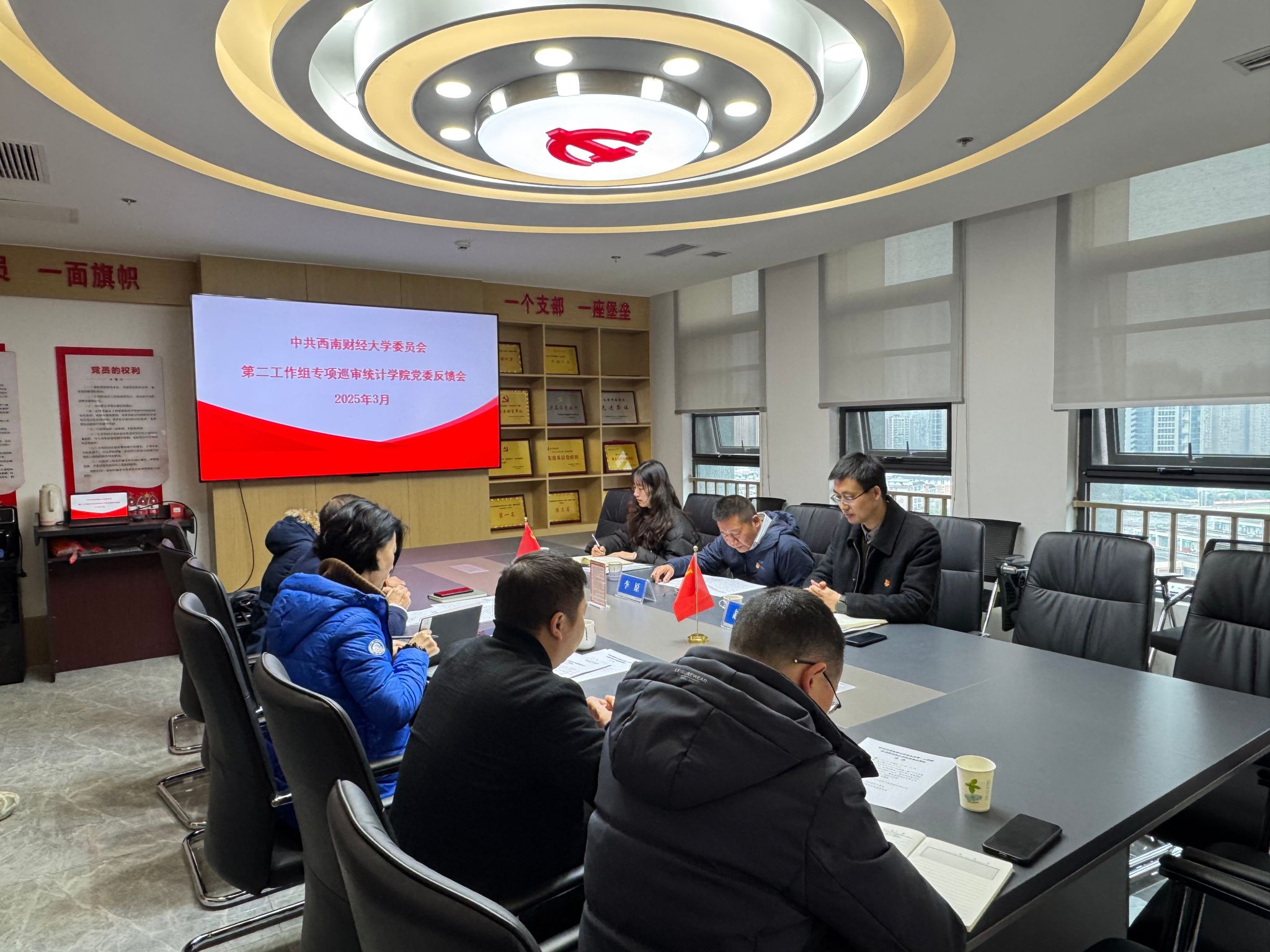 根据学校党委统一部署,2025年3月7日上午,学校党委第二工作组专项巡审统计学院党委反馈会在诚正楼1341A会议室召开。第二工作组组长李原、党委巡察办主任赵磊出席反馈会。学院党委书记董春作表态发言,学院院长郭建军主持会议。党委巡察办公室相关同志,学院领导班子成员、教师党支部书记、系(所)负责人、横向课题项目负责人代表、科级干部、教师代表等参加会议。