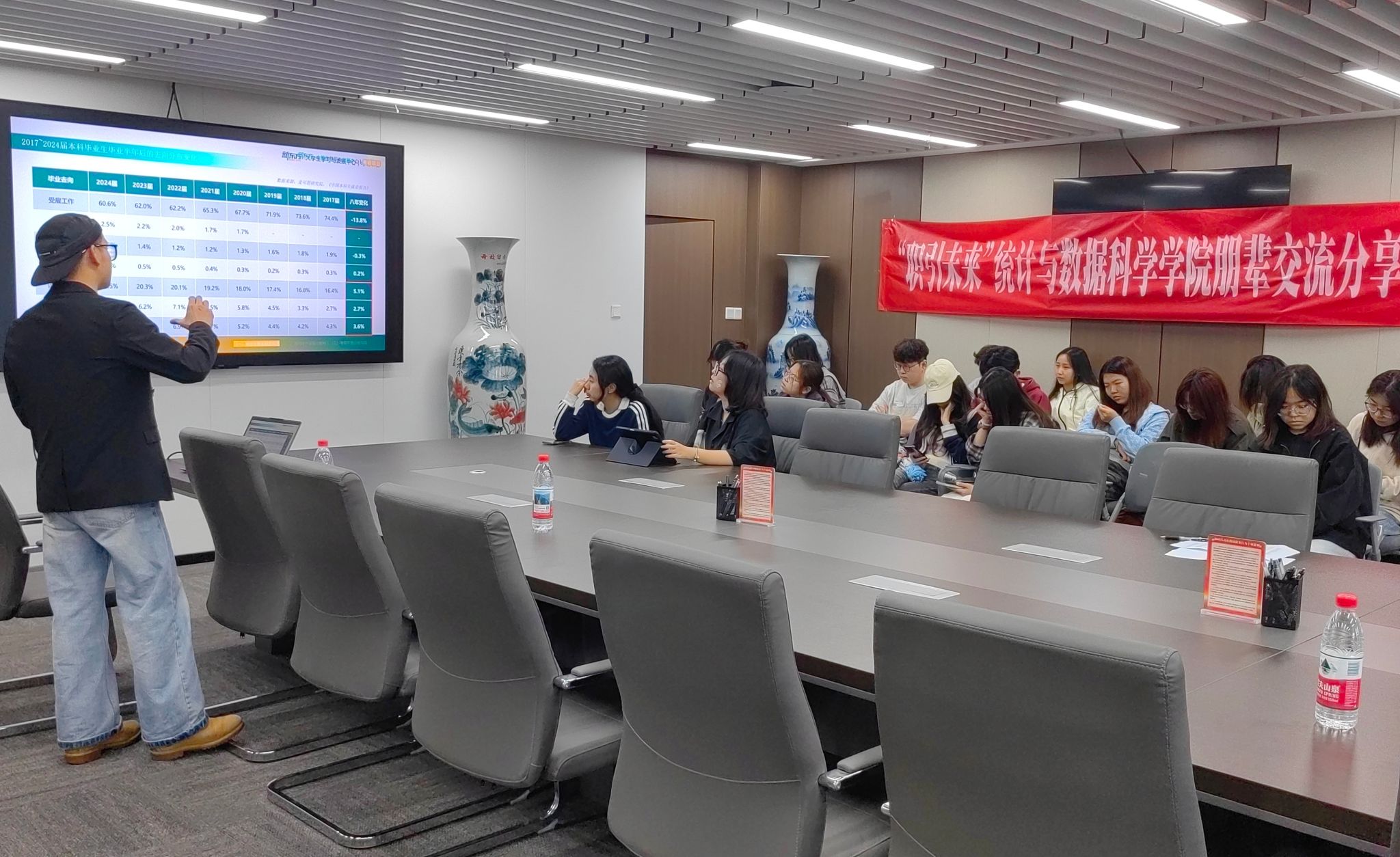 交流会还邀请到了新东方大学生学习与发展中心的讲师,他围绕考研价值、发展前景、政策要点展开讲解,解读国家线、自主划线等关键信息,并结合学院实际与不同院校报考要求,为同学们提供多元升学参考。