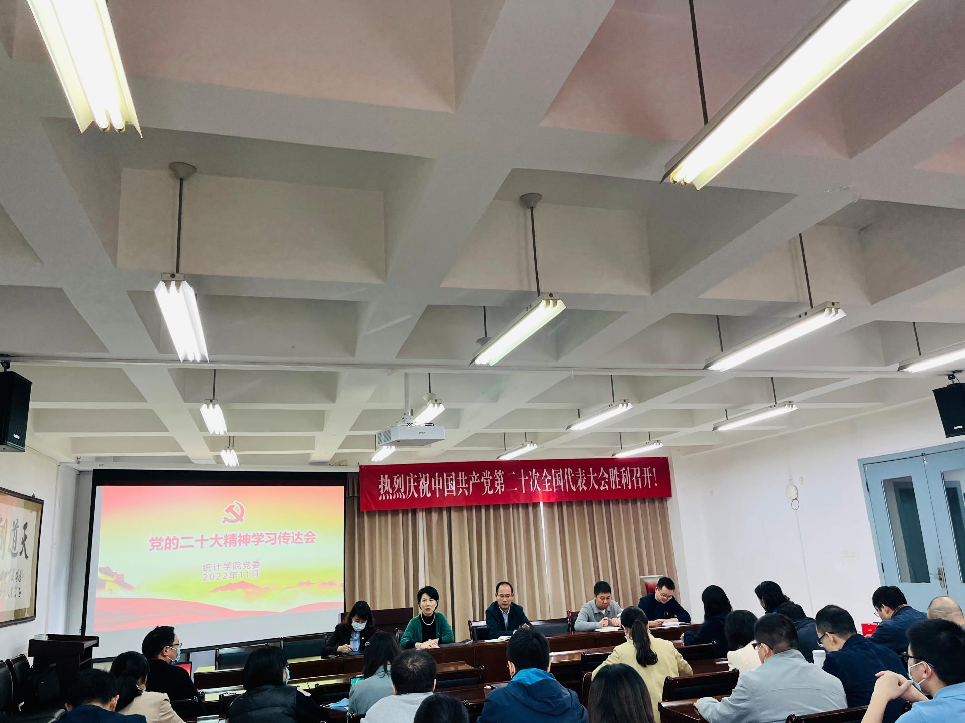 2022年11月1日下午,统计学院召开全院大会,传达学习党的二十大精神,对学院学习宣传贯彻党的二十大精神工作作出安排。院长郭建军主持会议。