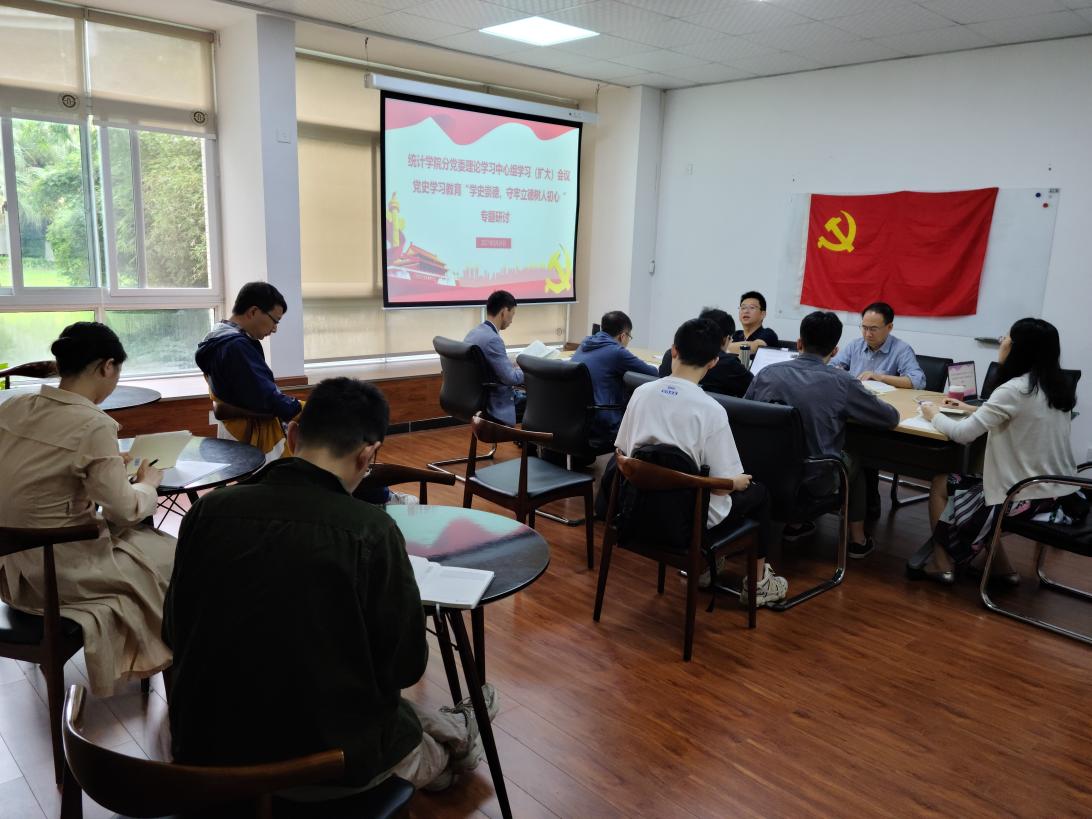 为扎实开展党史学习教育,统计学院于2021年5月26日上午在通博楼B101会议室开展党史学习教育“学史崇德,牢守立德树人初心”专题研讨。学院分党委理论学习中心组成员参加会议,学院纪委委员、教师党支部书记、系所主任和学生党支部书记代表列席学习会。分党委书记黄海波主持会议。